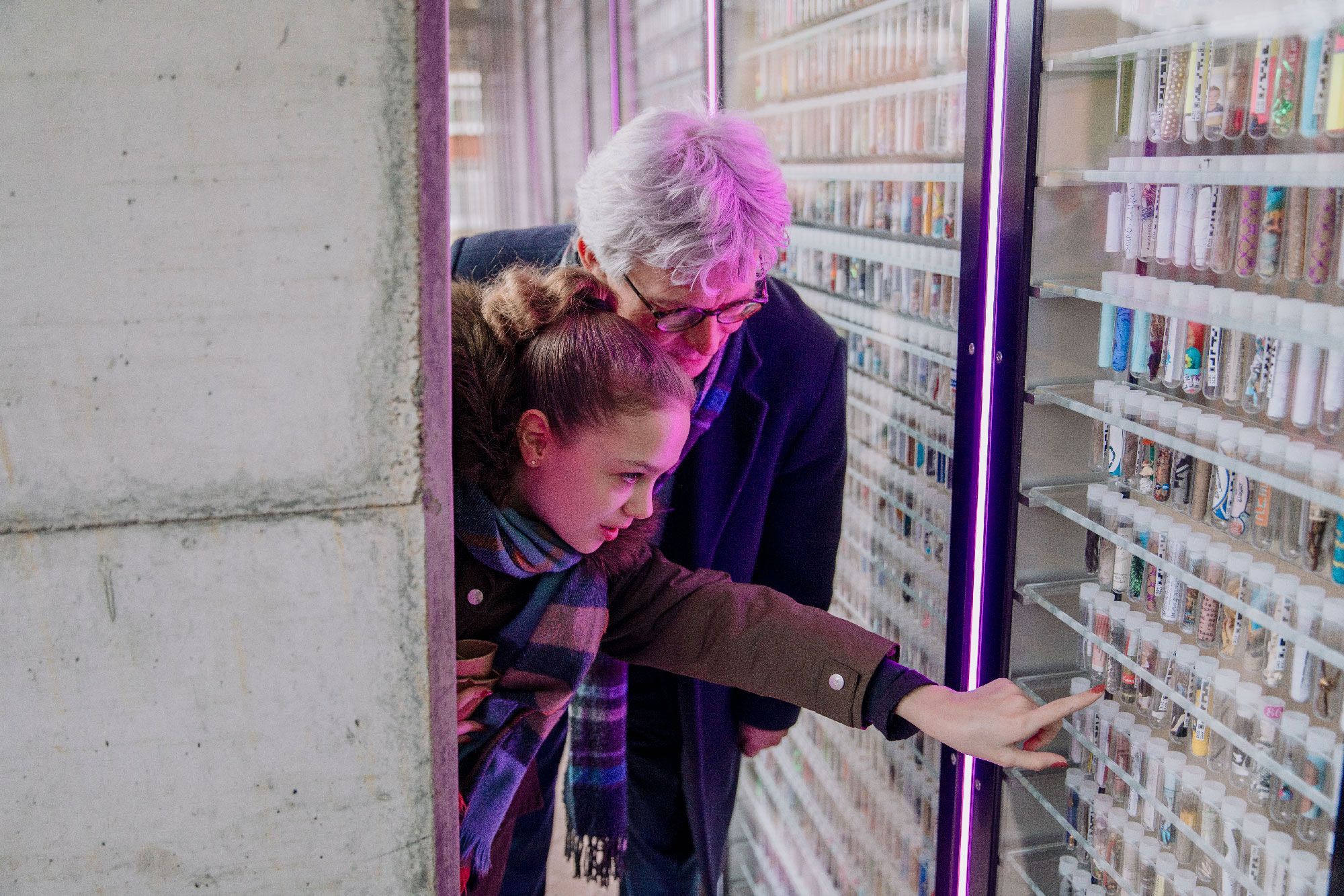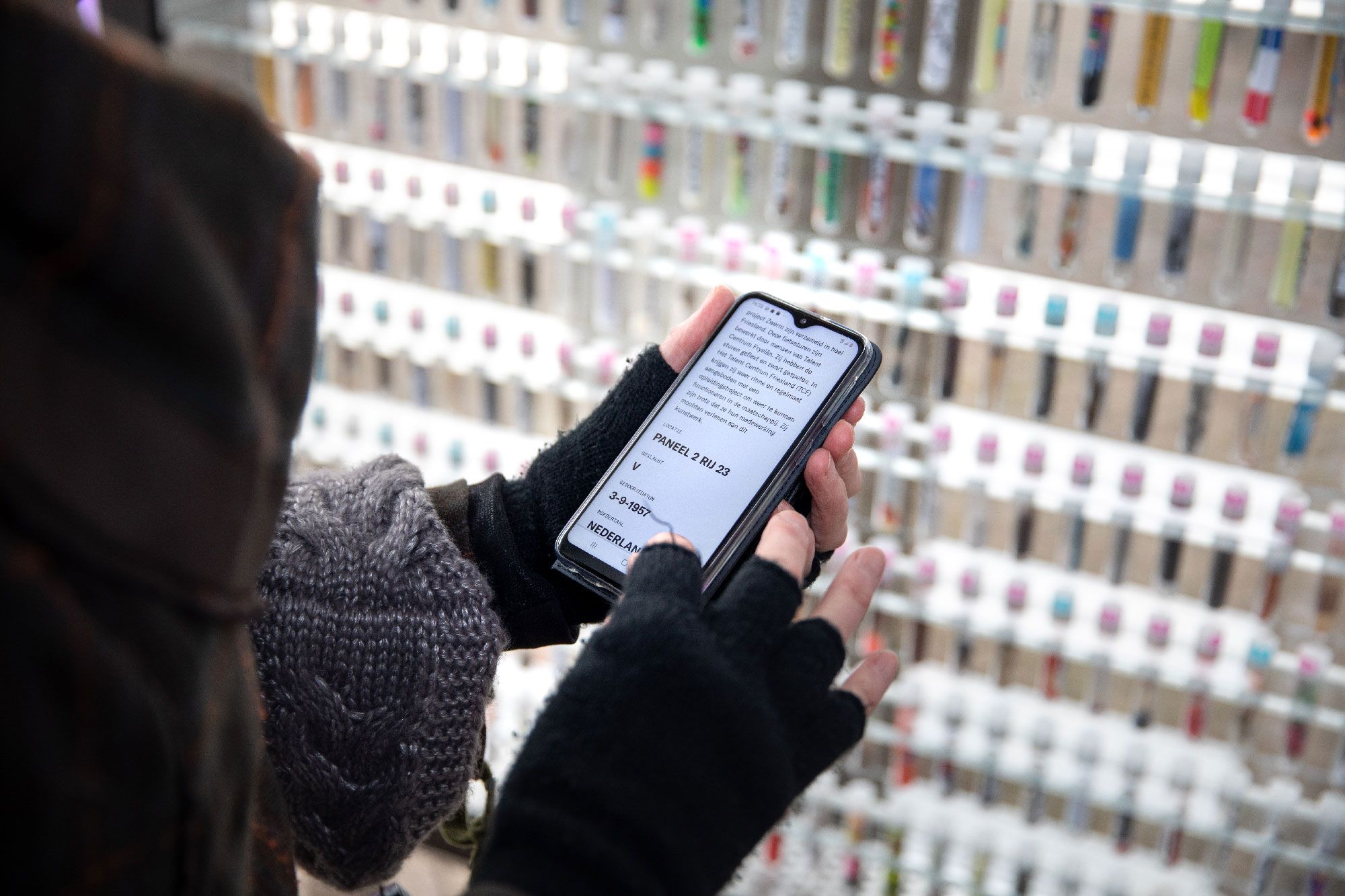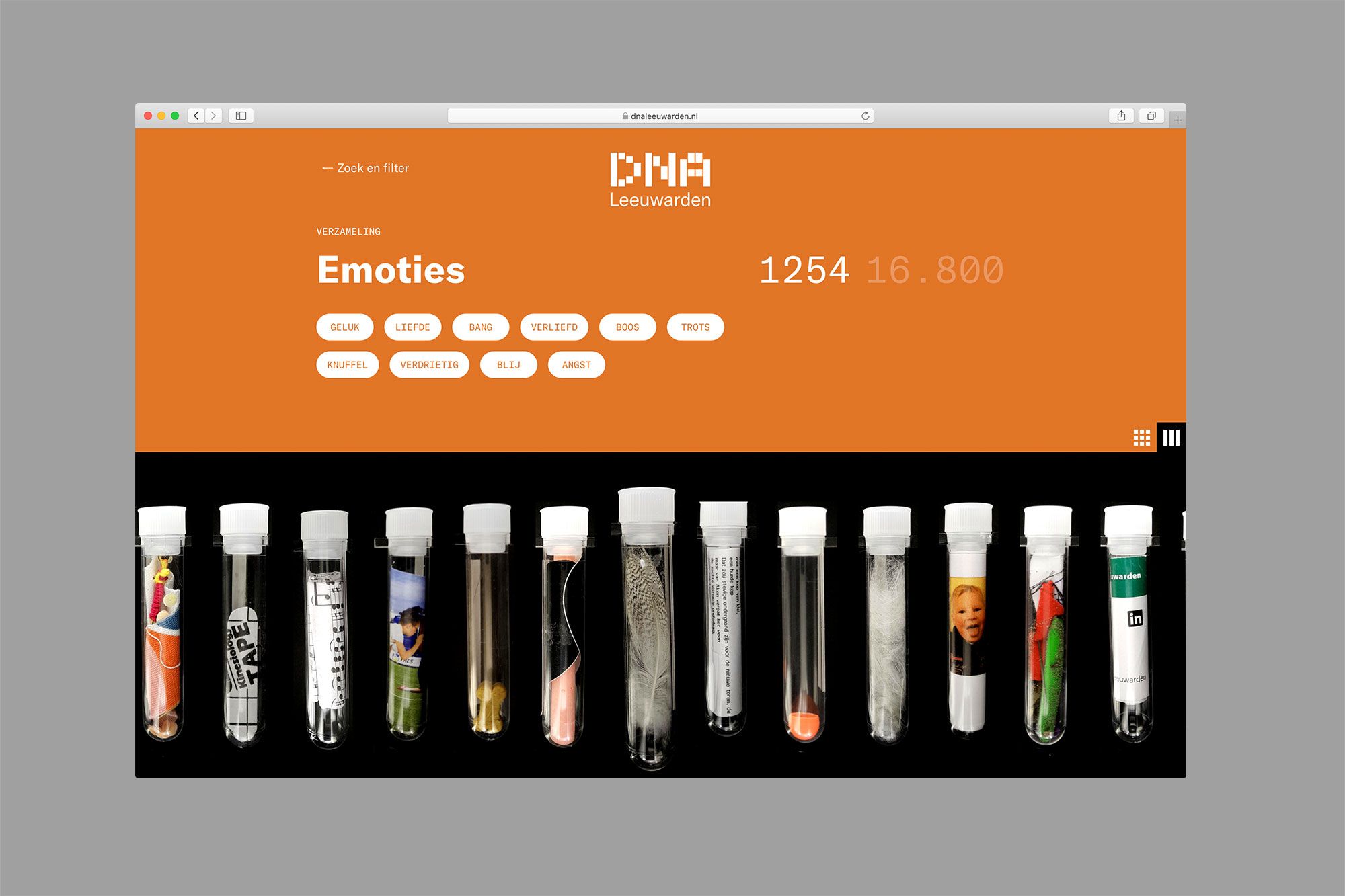 You can find the stories behind every tube at dnaleeuwarden.nl. The tubes can be filtered by collection (themes like history, family, emotions and language). Part of the artwork are lights that correspond with those themes. This indicates where tubes with a specific theme are in the artwork and shows how many stories there are with that theme.