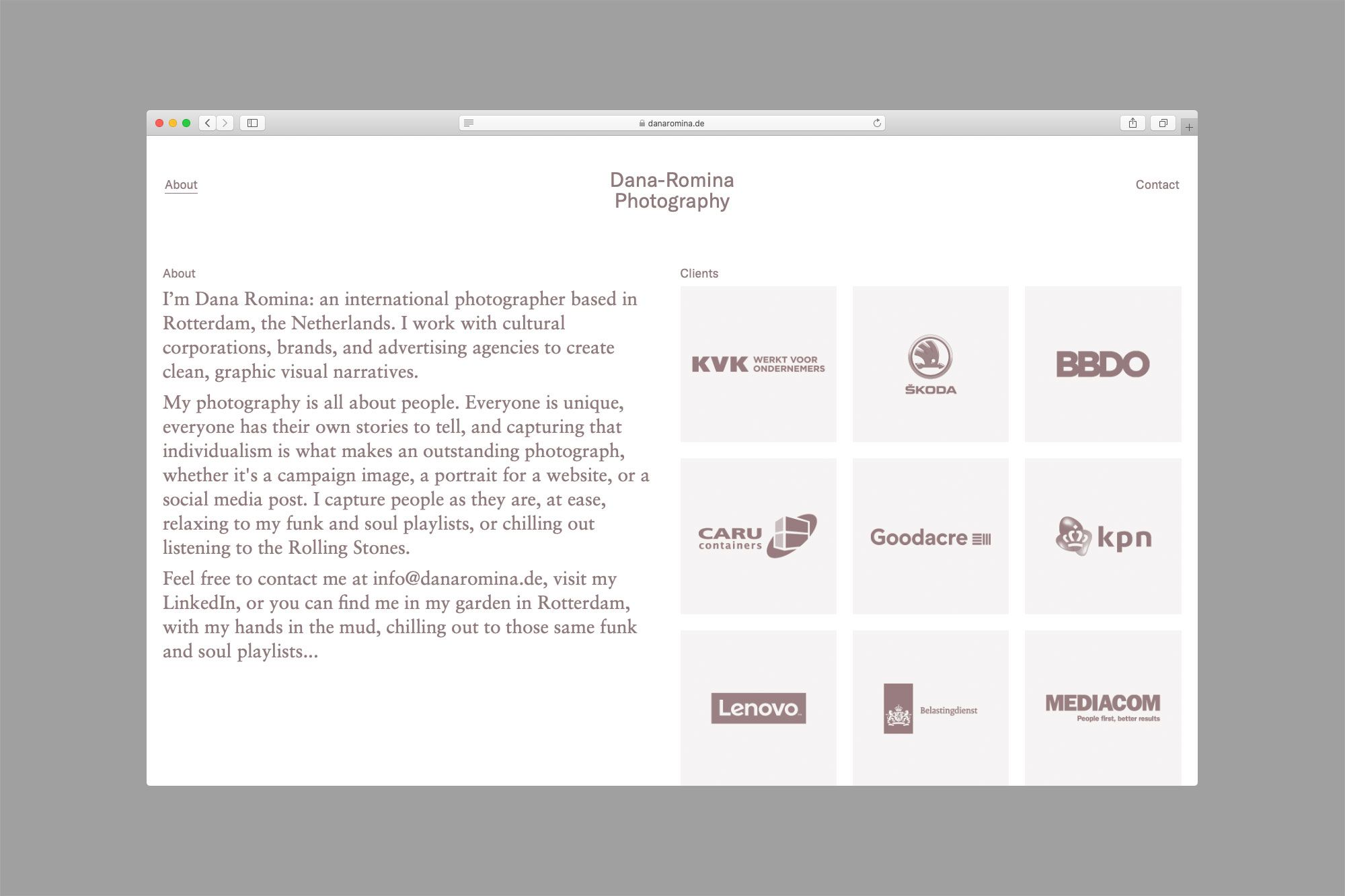 For Dana Romina, I designed a fitting identity and designed and developed the website.